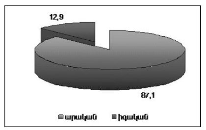 - հանքանյութի հետ մասնագիտական կոնտակտ չունեցողների շրջանում արական սեռի անձիք բացարձակ մեծամասնություն են կազմում`87,0%,