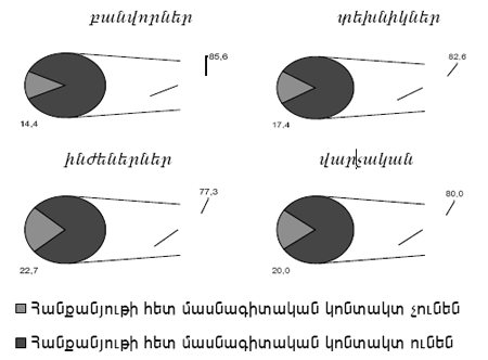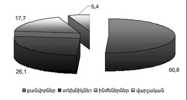 - երրորղ տեղում ինժեներներր`17,7%, իսկ չորրորդ տեղում`վարչական աշխատողներր`5,4%: