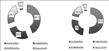 - առաջին տեղում գտնվում են բանվորներր` 52,4%,
