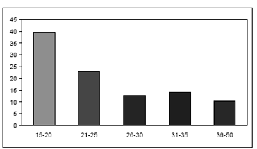 Նկար 1. Երեխայի խնամքից հրաժարված միայնակ մայրերի տարիքային բաշխվածությունը (%)