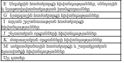 E` էնդոկրին համակարգի հիվանդություններ, սննդային և նյութափոխանակության խանգարումներ |
