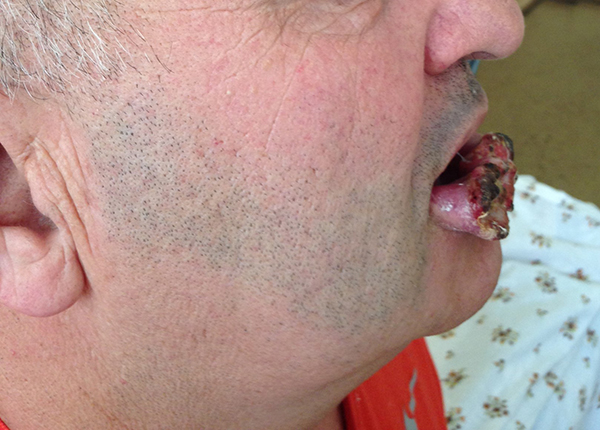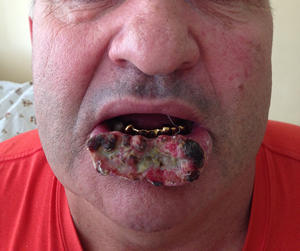 Հիվանդը դիմել է Ուռուցքաբանության ազգային կենտրոն 2015 հունվարին ստորին շրթունքի քաղցկեղի T3N1M0 փուլում նեոադյուվանտ ճառագայթային բուժումից հետո ՌԴ-ից: