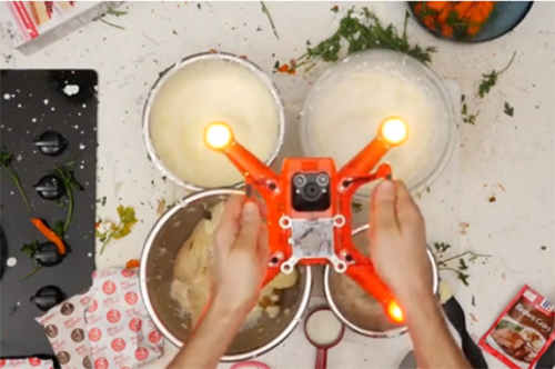 Նշվում է, որ սարքի միջոցով հաջողվել է մաքրել կարտոֆիլն ու գազարը, ինչպես նաև` կտրատել բանջարեղենը: Այնուհետև սարքի վրա հարիչի ծայրակալներ են տեղադրվել, ինչի շնորհիվ հնարավոր է դարձել միաժամանակ խառնել չորս տարաների պարունակությունը: Սարքի միջոցով նաև տապակել են հնդկահավ, սակայն տեսահոլովակը ստեղծողները նշել են, որ սա անօդաչուի օգտագործման լավագույն տարբերակը չէ. առավել նպատակահարմար է տեսանյութեր նկարահանել դրանով: