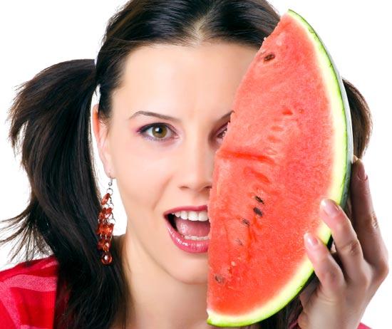 2. Մաշկի վատ գույնի և անկենդան տեսքի դեպքում կօգնի ձմերուկի լոսյոնը: Հարիչով հարել ձմերուկի միջուկը և ավելացնել վարունգի հյութ: Դեմքը շփել օրվա ընթացքում մի քանի անգամ: