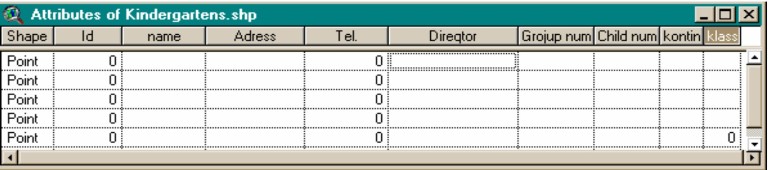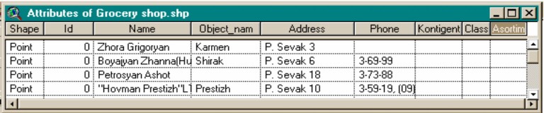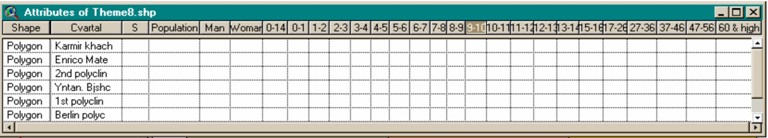 Նոր պոլիգոնային Թեմա ստեղծելիս նրա համար ավտոմատ ավելանում է Ատրիբուտների աղյուսակ: Սկզբանկան աղյուսակը պարունակում է երկու դաշտ` Shape և ID, որտեղ նշված է օբյեկտի տարածական պատկերը (պոլիգոն, գիծ, կետ): Այդ դաշտերը չեն կարող խմբագրվել: Ատրիբուտային աղյուսյակների լրացման տեխնիկան և նրանց միջոցով կատարվող գործողությունները կպարզաբանվեն II և IV մասերում: