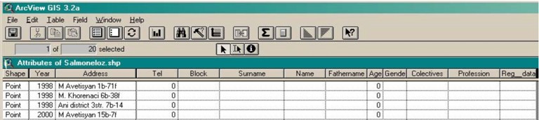 - Մշակել ժամանակակից տեղեկատվական տեխնոլոգիաները համաճարակաբանության մեջ կիրառելու գիտականորեն հիմնավորված մեթոդներ: Մեզ հասանելի տեղեկատվության սահմաններում ամենահարմարը համակարգչային Arc View GIS ծրագրային փաթեթն է: