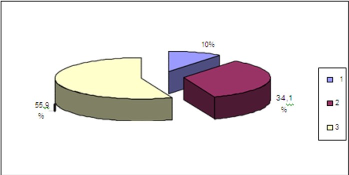 Նկար 14. ՃՏՏ-ի ելքերի տեսակարար կշիռը 1-մահ, 2-ամբուլատոր դիմելիություն, 3-հոսպիտալացում
