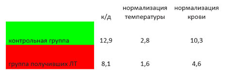 Клиническая оценка эффективности ЛТ. Таблица 1.