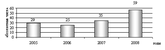 Как видно из рисунка, отмечается резкий рост числа больных с полиорганным туберкулезом в 2007-2008гг. По сравнению с 2005г. в 2008г. число больных увеличилось в 1,8 раза.