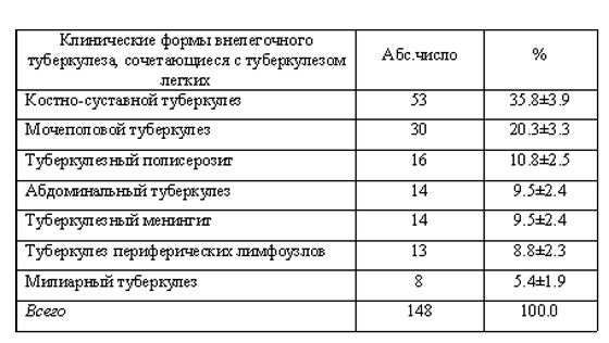 Частота сочетания туберкулеза легких с внелегочными формами туберкулеза