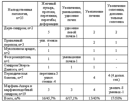 Ключевые слова: наследственная патология, деформация грудной клетки и позвоночника, ультразвуковое и электрокардиографическое исследование сердца, органов брюшной полости