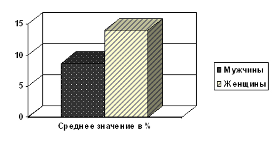 Рис.2. Самооцененная распространенность ПГ по половому признаку