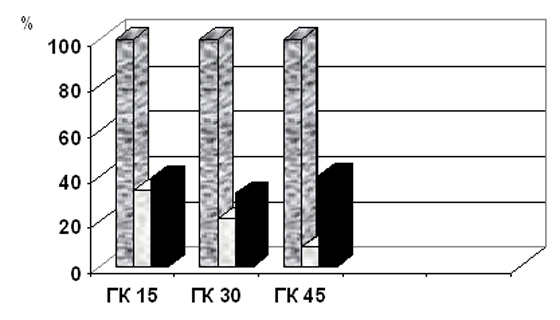 Так, на 15-е сутки ГК общая двигательная активность животных, получавших пирацетам, понижалась на 61,07% по сравнению с контрольной группой, на 30-е сутки ограничения двигательной активности – на 67,62% и на 45-е – на 60,05% (p‹0,005). Однако более выраженное влияние пирацетам оказал на повышенную эмоциональную реактивность животных, понижая ее на 20% на 30-е сутки ГК и на 40% на 45-е.