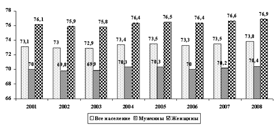 Рис.2. Средняя ожидаемая продолжительность жизни населения