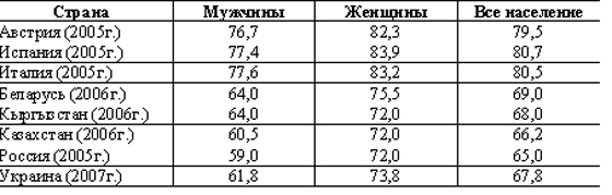 В западноевропейских странах показатель ожидаемой продолжительности при рождении намного выше [1, 2, 12]. Данные приведены в табл. 3.