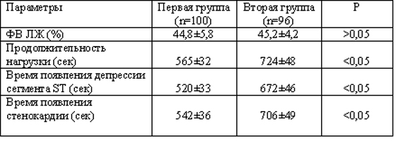 Показатели нагрузочного теста также благоприятнее оказались у больных второй группы:и ПН, и ВДST, и ВС у них были достоверно выше, чем у пациентов первой группы (табл. 3). Следовательно, уменьшение значения ССТК приводит к снижению толерантности к физической нагрузке, порога ишемии и стенокардии.