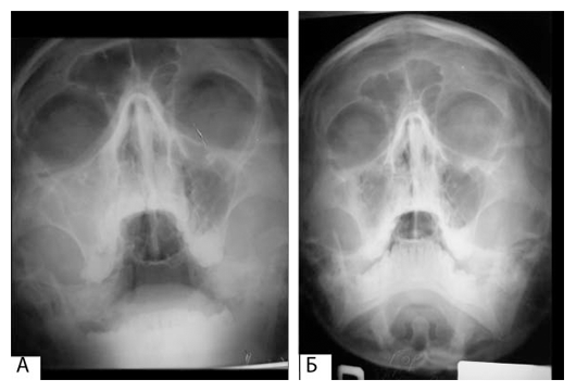 Рис. 1. Рентгенограмма в носолобной проекции: