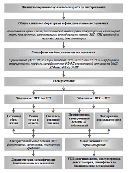 Рис.1. Алгоритм ведения женщин перименопаузального возраста до и после гистерэктомии.