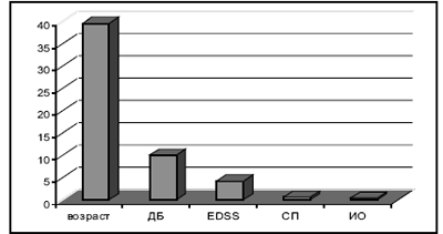 Рис.1. Показатели возраста, ДБ, EDSS, СП и ИО у больных РС