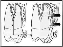 - В результате изменения положения центра вращения зуба, происходит перемещение апикальной части корня в вестибулярном направлении уже на этапе нивелирования зубного ряда. Данное явление лежит в основе оппозиционного роста альве-олярной кости на ранних этапах ортодонтического лечения.