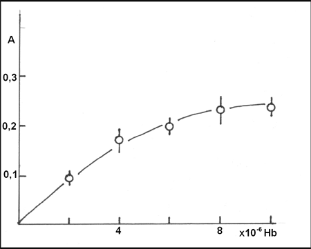 и очищаются eNox до электрофоретически гомогенного состояния (рис.1.1), с выходом белка на 72,4±6,5 % (р=0,03). Эффективное количество Hb для формирования eNox in vitro составляет до 8,5х10-6 М (рис. 2).