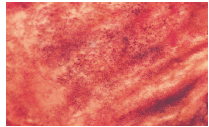 Базальная секреция соляной кислоты (циркадный процесс, который подчиняется холинер- гической регуляции через блуждающий нерв и гистаминергической - через локально выделяющийся гистамин) повышена, как правило, у больных, перенесших стресс. Важнейшим физиологическим стимулятором секреции кислоты является пища. Основные стимуляторы секреции кислоты в желудке - гистамин, гастрин и ацетилхолин. Многие факторы угнетают секрецию кислоты, наиболее важными среди них являются простагландины и соматостатин. Как стимуляторы, так и ингибиторы процесса секреции кислоты в желудке действуют через специфические рецепторы, находящиеся на обкладочных клетках. Гистамин, выделяющийся в основном из энтерохромаффинных клеток слизистой оболочки желудка, стимулирует секрецию кислоты через Н2-рецепторы, связанные с циклической АМФ (цАМФ). Гастрин и ацетилхолин активируют специфические рецепторы, связанные с системой «кальций /протеинкиназа С» [23,41,73,74]. Исследования, проводимые на протяжении последних лет, подтвердили высокую значимость дисбаланса цитокинов, концентрации которых резко повышаются при тканевом повреждении любого генеза, в развитии вторичных повреждений ЖКТ, при которых фактор некроза опухолей (ТNF), интерлейкины (IL-1, IL-8) и целый ряд других цитокинов, относящихся к провоспалительным медиаторам, способны выс-вобождаться в системный кровоток и вызывать дистанционное повреждение во многих органах (в том числе - ЖКТ). Было доказано, что указанный механизм может быть вовлечен в патогенез синдрома спланхической гипоперфузии, а также участвовать в гипотонии и атонии кишечника [7,18,86]. Нестероидные противовоспалительные средства, широко используемые в травматологической практике, являются важным повреждающим фактором для слизистой оболочки желудка и двенадцатиперстной кишки, поскольку эти препараты угнетают выработку простагландинов -необходимых факторов защиты слизистой оболочки [49]. Уже через несколько часов после развития критического состояния при эндоскопическом исследовании желудка становятся заметными субэпителиальные петехии (рис.2), часть из которых способна быстро прогрессировать в эрозии и язвы (рис.3). По истечению суток эрозивный гастрит и стрессорные язвы желудка выявляются уже у 74-100% пациентов ОРИТ, имевших эпизод острой гипоксии. В типичных случаях петехии локализуются в области дна желудка. В пилорическом отделе повреждения мукозного слоя формируются реже и позднее, чем фундальные, но, как правило, охватывают более глубокие слои [76, 82,86].