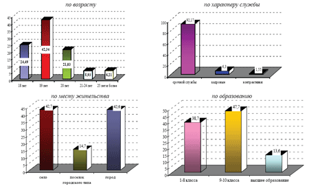 Обобщая, можно заключить, что полученные результаты практически по ка зы вают охват основных категорий военнослужащих Республики Армения первого го да службы, т.е. выбранный нами контингент по представ лен ным параметрам полностью соответствует требованиям, предъявляемым подобным ис следованиям и прак тически может отражать суть происходящих явлений.