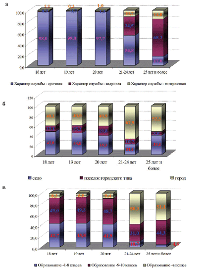 Анализ показывает, что: лица в возрасте 1820 лет составляют 87,86%; военнослужащие срочной службы - 92,17%; 85,2% - это люди, призванные в ряды Вооруженных Сил РА из городов и сел; лица, имеющие неполное среднее образование и окончившие