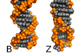 Науке известны три формы ДНК: В-форма (правозакрученная двойная спираль, встречающаяся чаще всего), А-форма (структура компактнее - на одном витке спирали 11 пар оснований, а не 10 как у В-формы) и Z-форма.