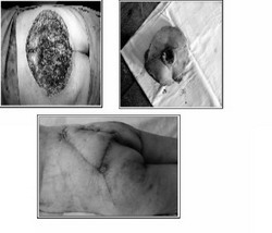 - Широкое иссечение опухоли с пластикой васкуляризированным лоскутом (кожно-фасциальная, кожно-мышечная, кожно-костная пластика).