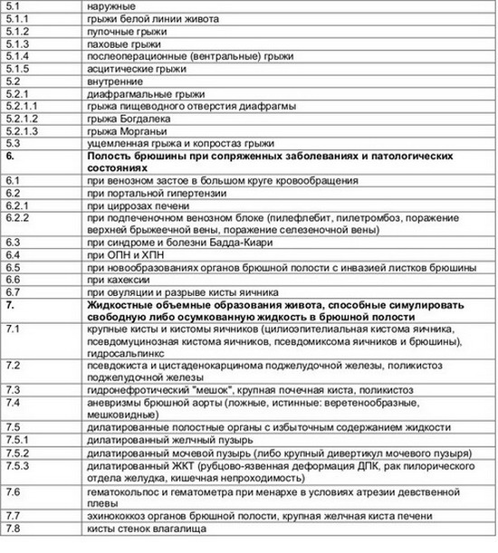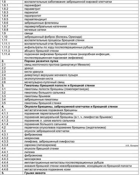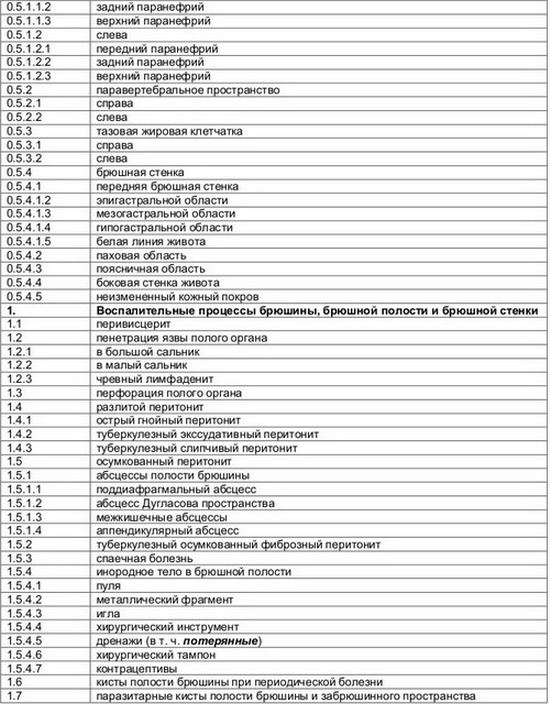 Перечень нормы и патологических состояний брюшины, полости брюшины, забрюшинного пространства и брюшной стенки